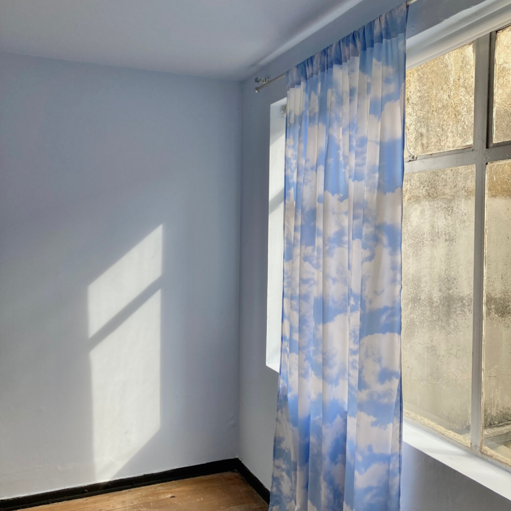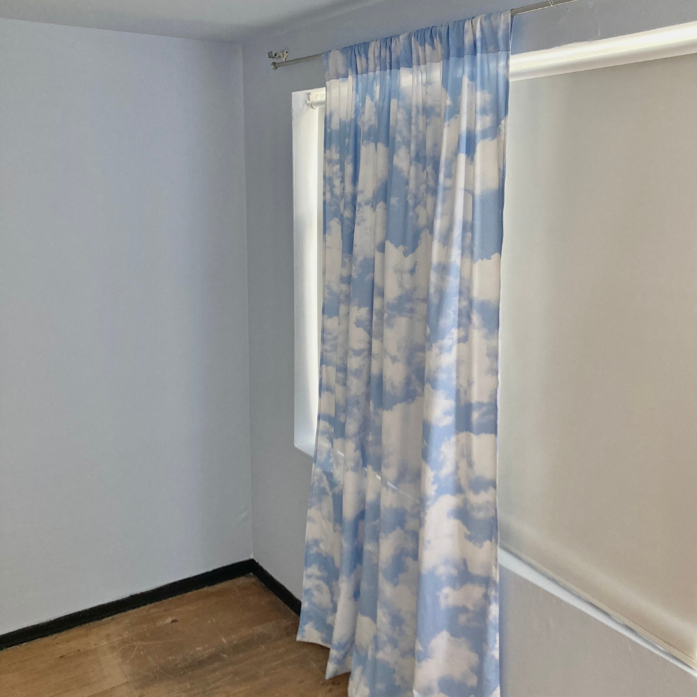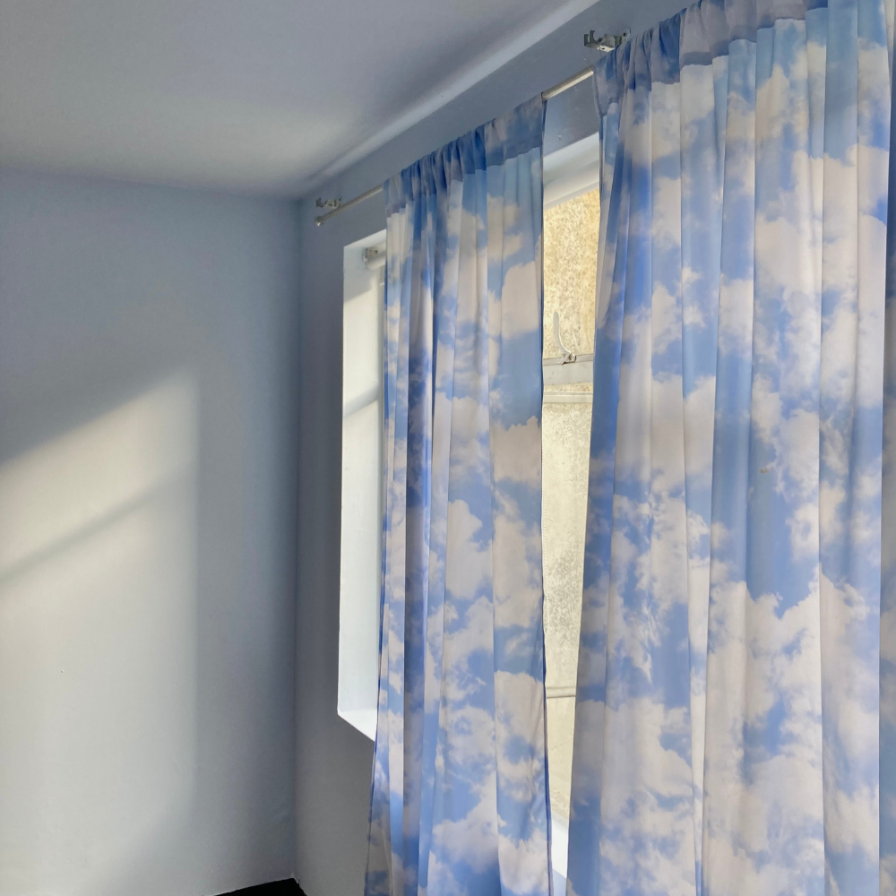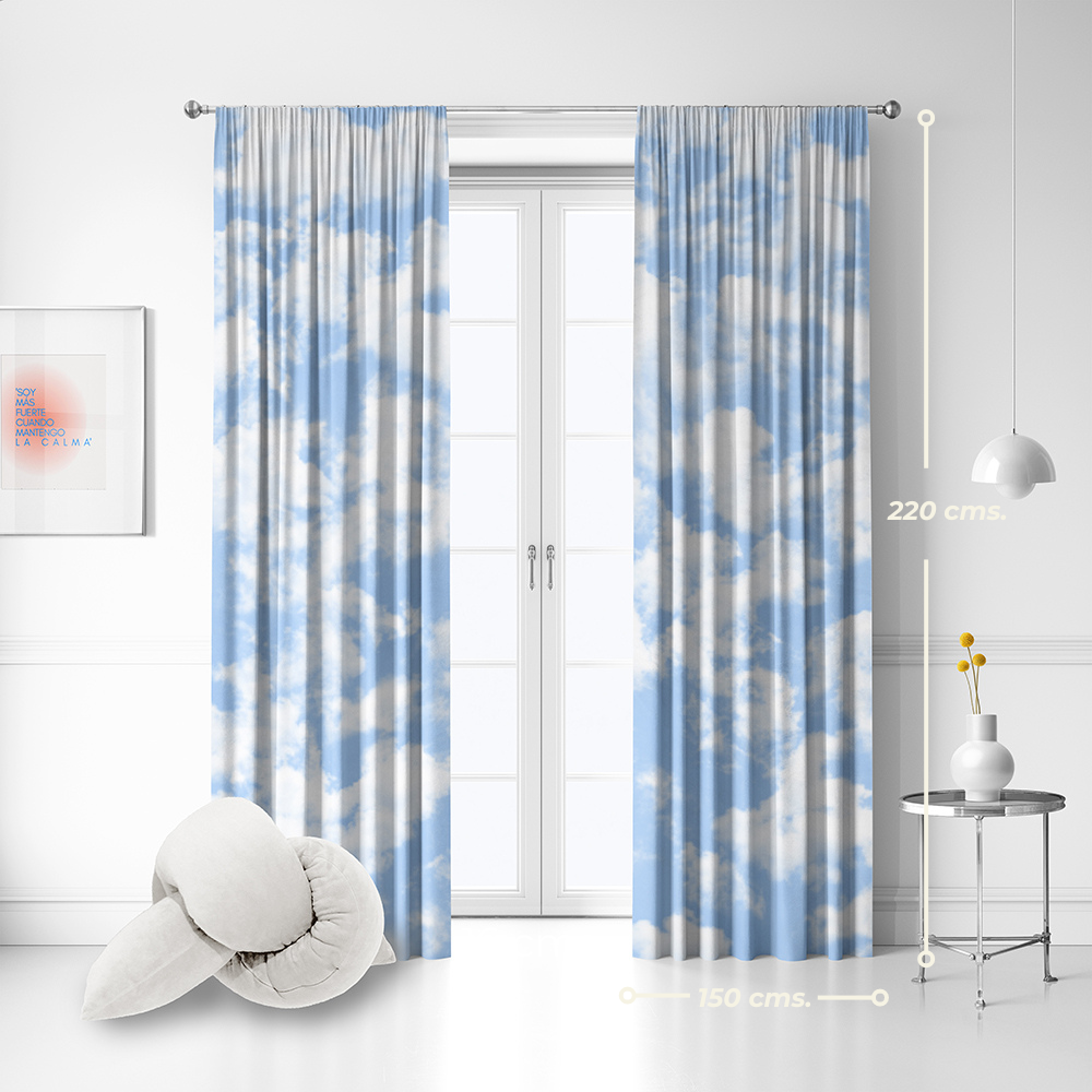 Sea cual sea el clima afuera o adentro, decora tu espacio con un trozo de cielo azul pastel atravesado por nubes y claridad.