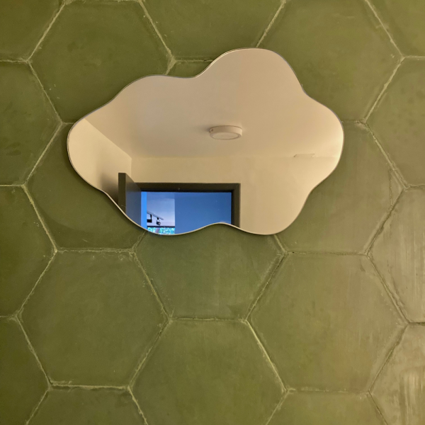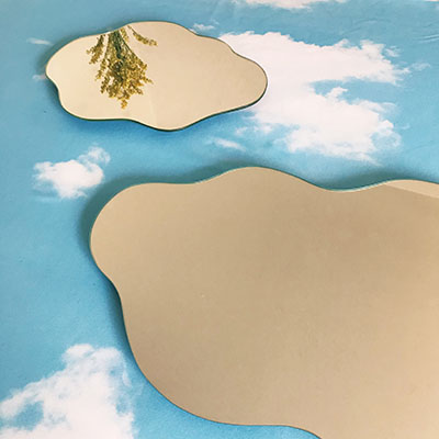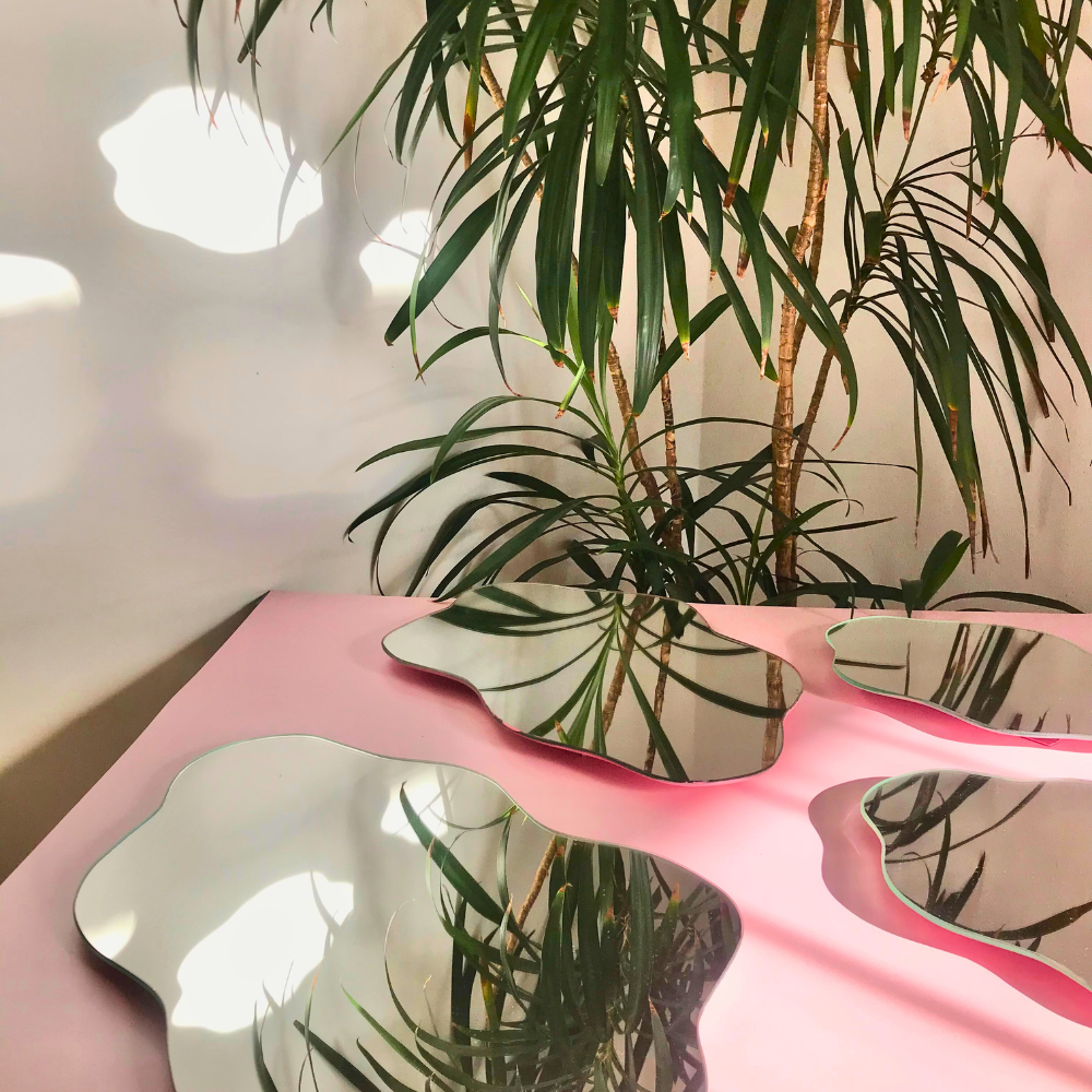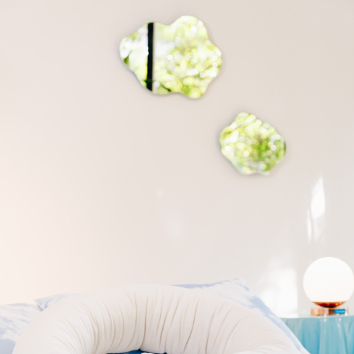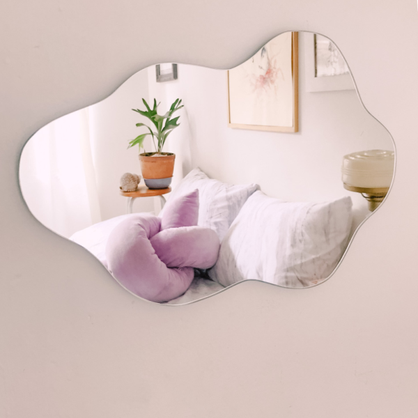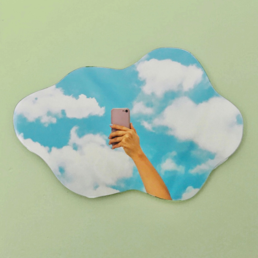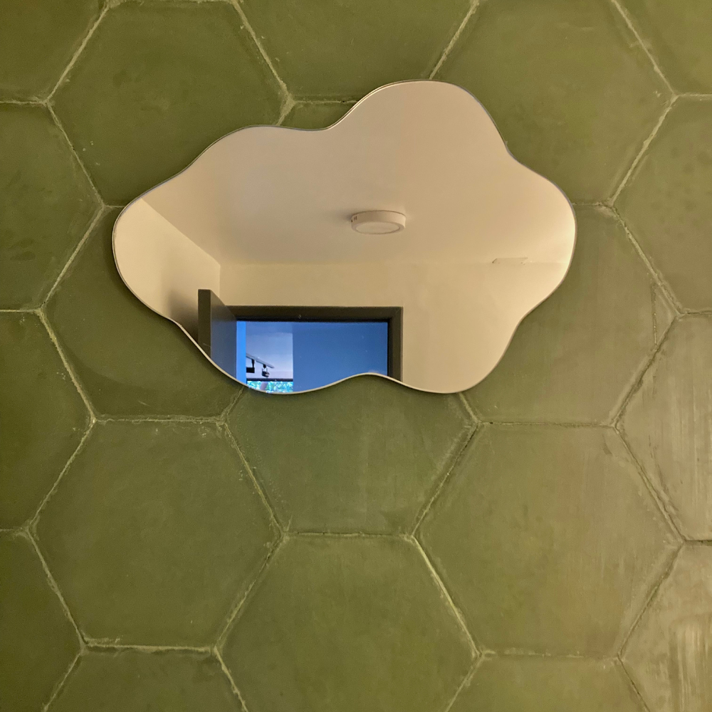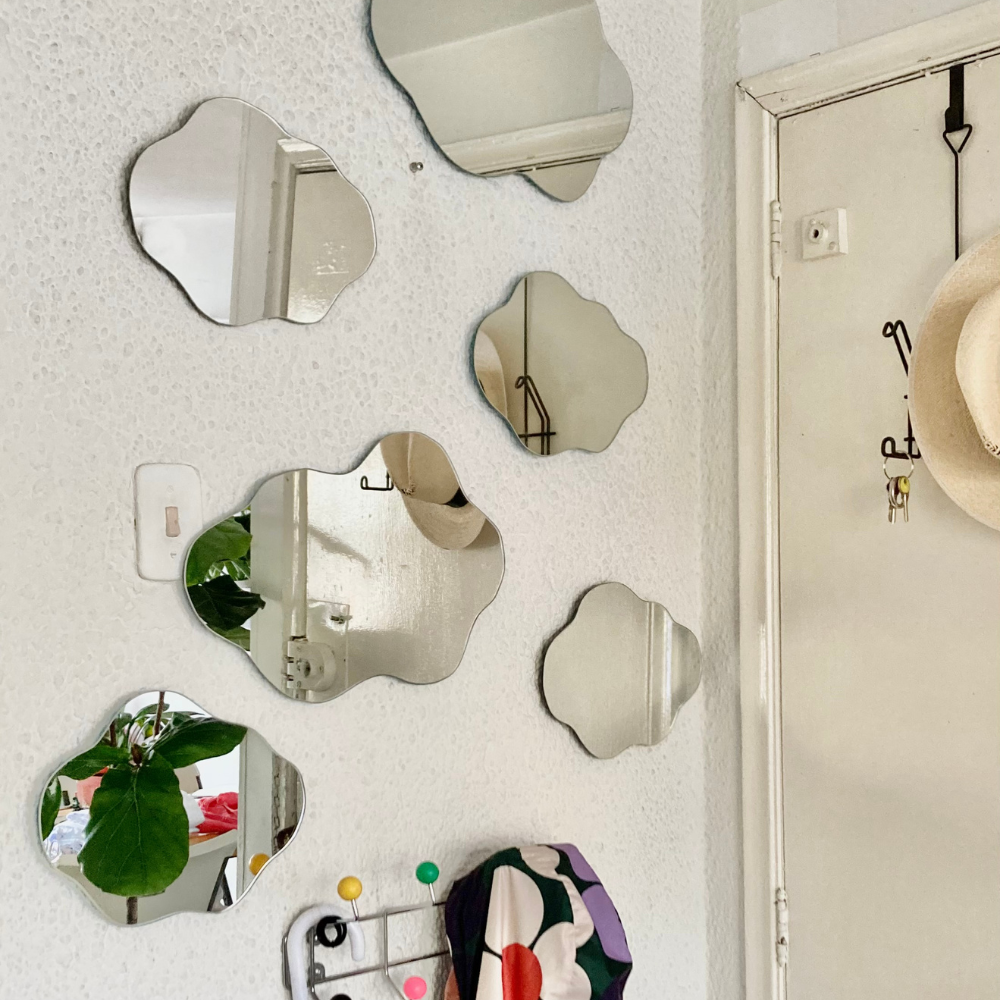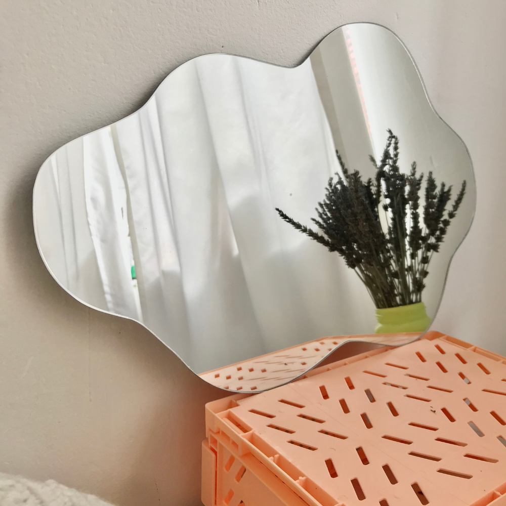 El espejo flotante de Zuhause es cortado a mano, haciendo cada espejo único. Solo necesitas un lugar donde colgarlo! 🌩️