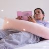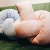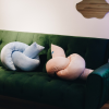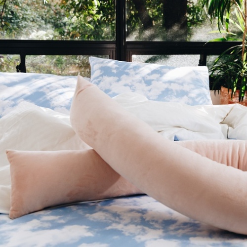 El cojín tubular mide 2 metros de largo por 22 centímetros de ancho. La proporción perfecta para enrollarte en él y amarrarlo entre sí. Tiene una cremallera invisible para cuidarlo fácilmente.